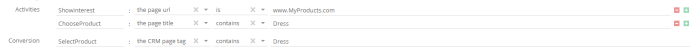 • Meta tag: a html meta-tag value. E.g. :<metaname="purchased" content="1">