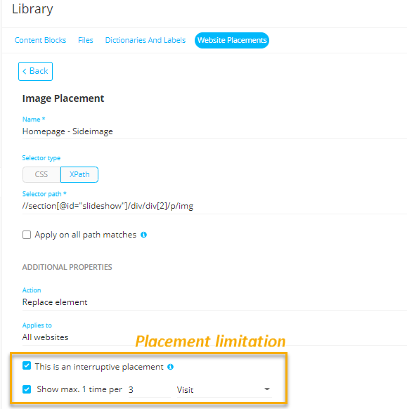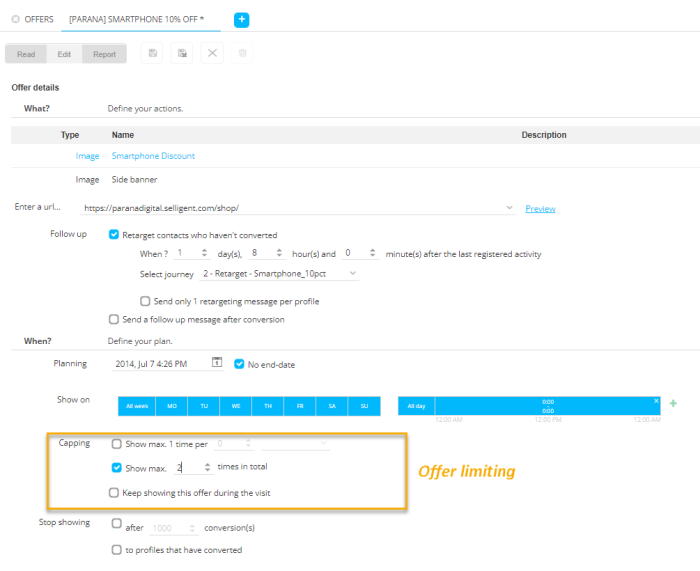 Lastly, an offer action is displayed in a placement, which can be limited as well. Moreover, when multiple actions target the same placement, this limit can be reached very quickly.