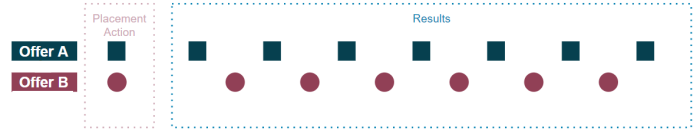 When different offers use the same placement, only one offer can be displayed at a time, where the offer with the highest priority is displayed first.