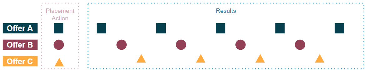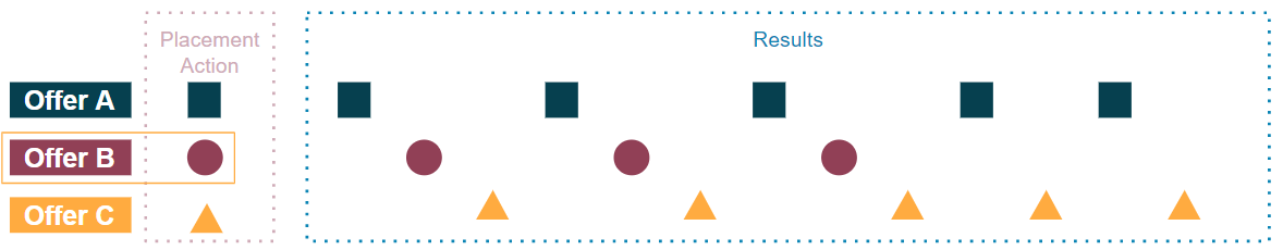Offer A, B and C all use the same placement and have again no limitations. Offer A has priority over offer B and next offer C:![]()