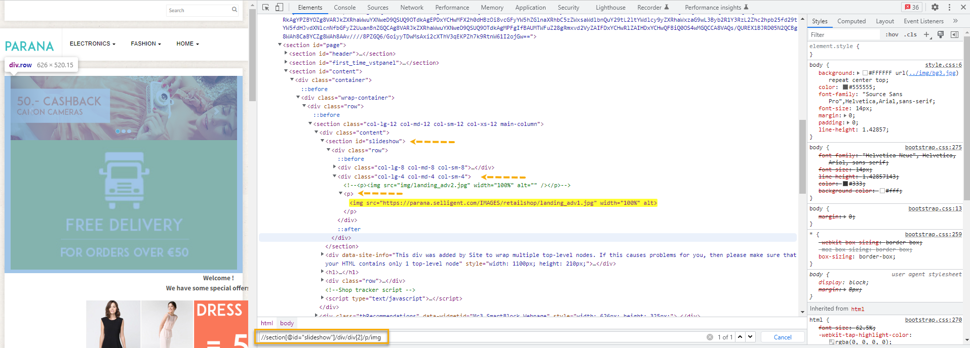 3. Check if the offer displays on the website. You can do this by checking the xpath placements. When the offer is displayed in a placement with a specific xpath, but the structure of the website has changed, this might result in the xpath being no longer valid. You can check this by entering the xpath in the browser.