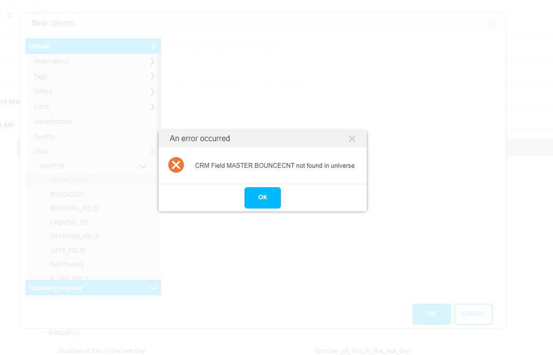 - Adding a CRM exposed field to my universe generates an error. What could be wrong?
