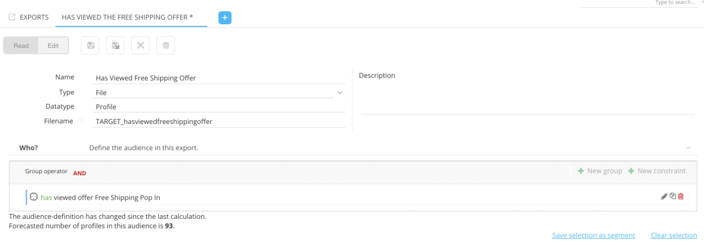 - Configure the Export in Site and define what fields need to be exported from the profile data, tag values or segments.