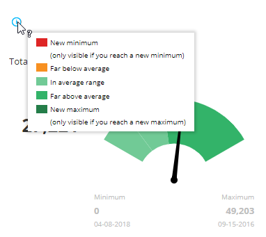 Minima and maxima values are provided together with the date on which these amounts were achieved. Hover the 'i' for details on the color code used for the gauges.