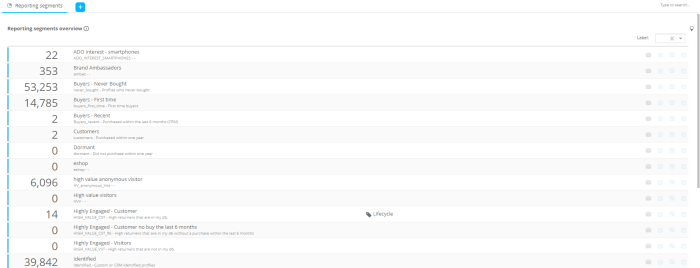 The content of these reports is the same as ‘Visitor insights’, with a choice between General reports and Web metrics. The data is of course limited to the selected Reporting segment.