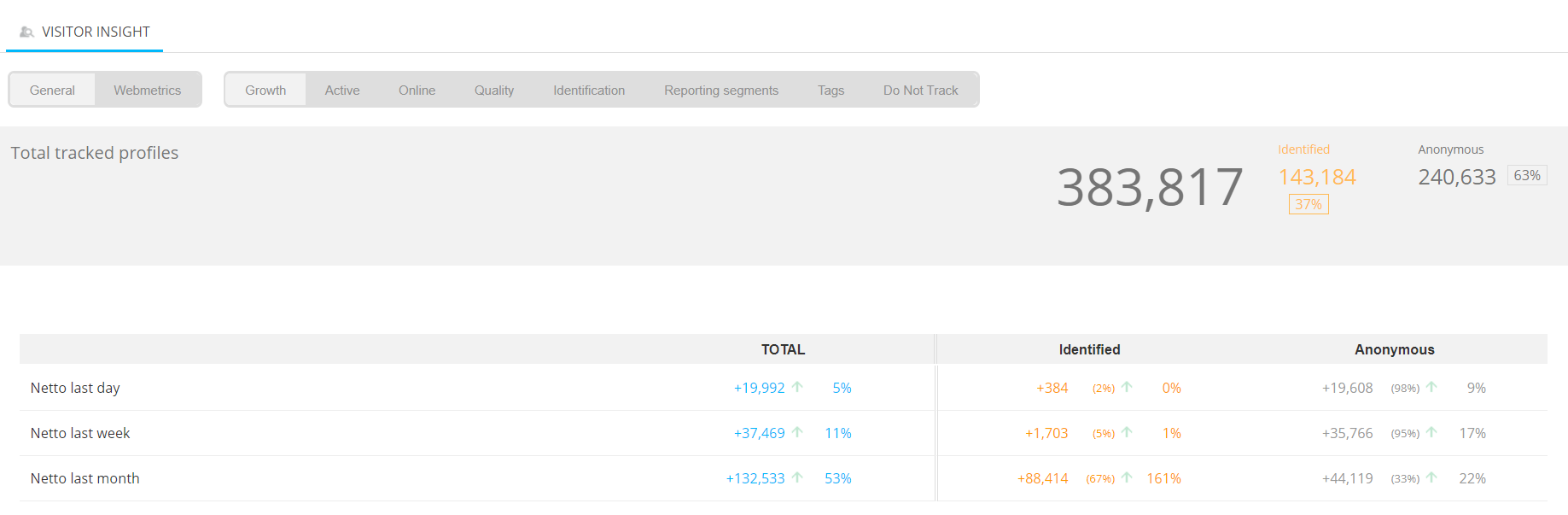 - What is the balance between the growth of anonymous and identified profiles?