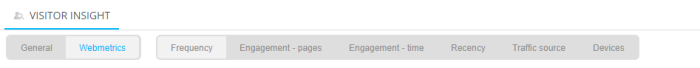 Visitor insight reports are split over two sections: General and Web metrics. The choice is made by using the buttons in the toolbar. The options on the right are adapted accordingly: