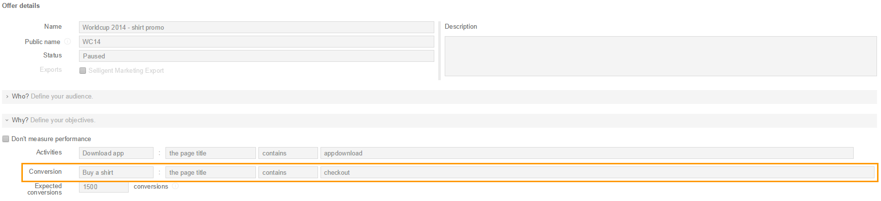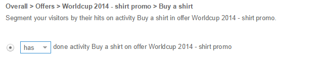 Example: The offer 'worldcup 2014 - shirt promo' contains a conversion activity
