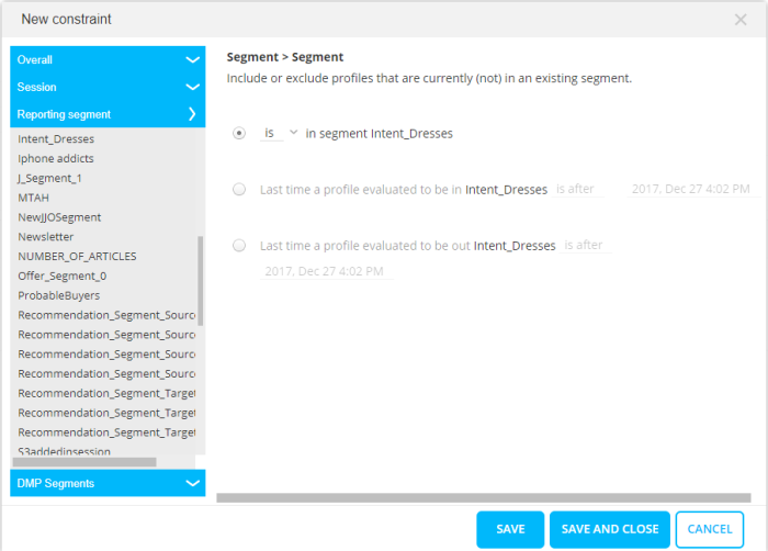 - the date and time a profile has entered a specific Reporting segment