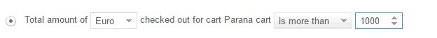 - The amount of articles/money in the cart compared to a number.