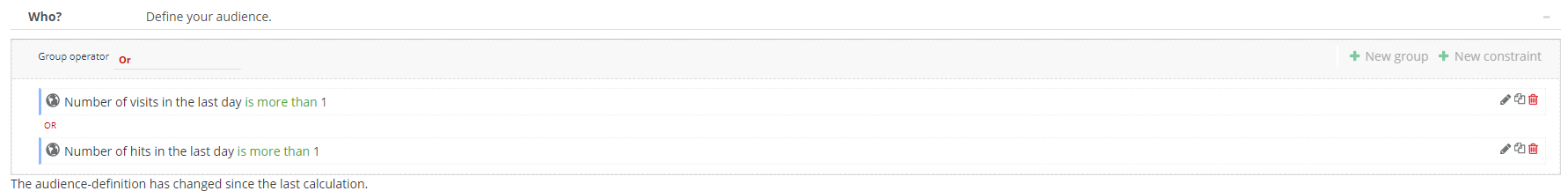 Example: Below is an example of 2 constraints created in a group with operator