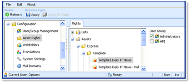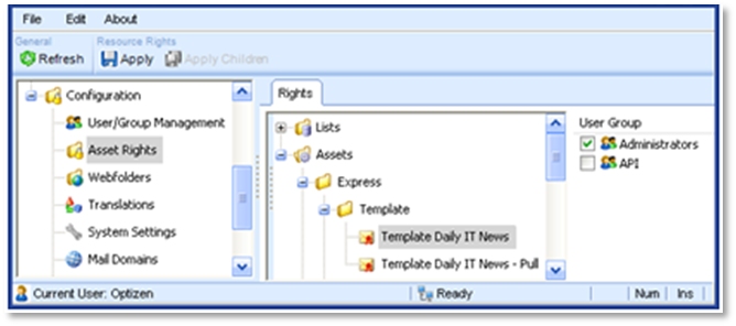 - Find the TEMPLATEID, LISTID, SEGMENTID and FOLDERID in the XML and check if the API-users has got (reading-)rights on these assets