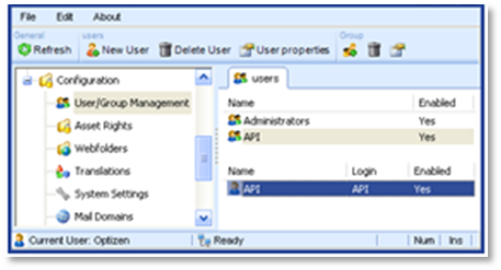 This user needs to be created in the Campaign configuration, and can only have access on the 2 API-rights.