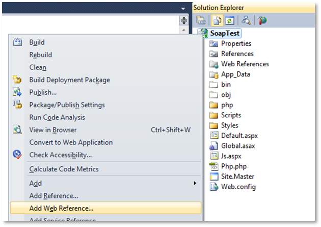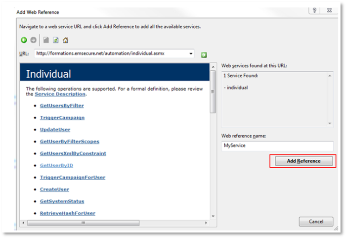 When done with the configuration click on the “Add Reference” button to register the web service in your application.