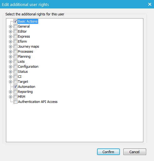 To do so, go to User/Group Management and create a new user, give it a name and password and only rights to “automation”: