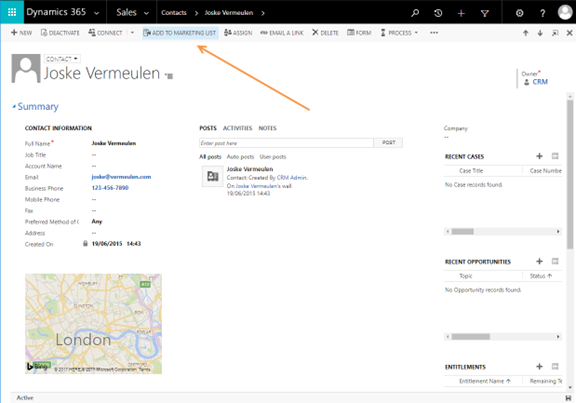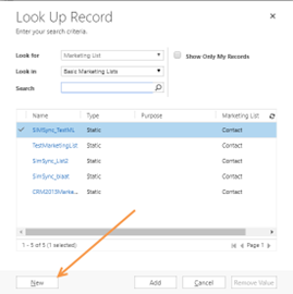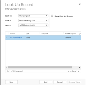 13. Select the option Add to marketing list from the toolbar. The following dialog is displayed: