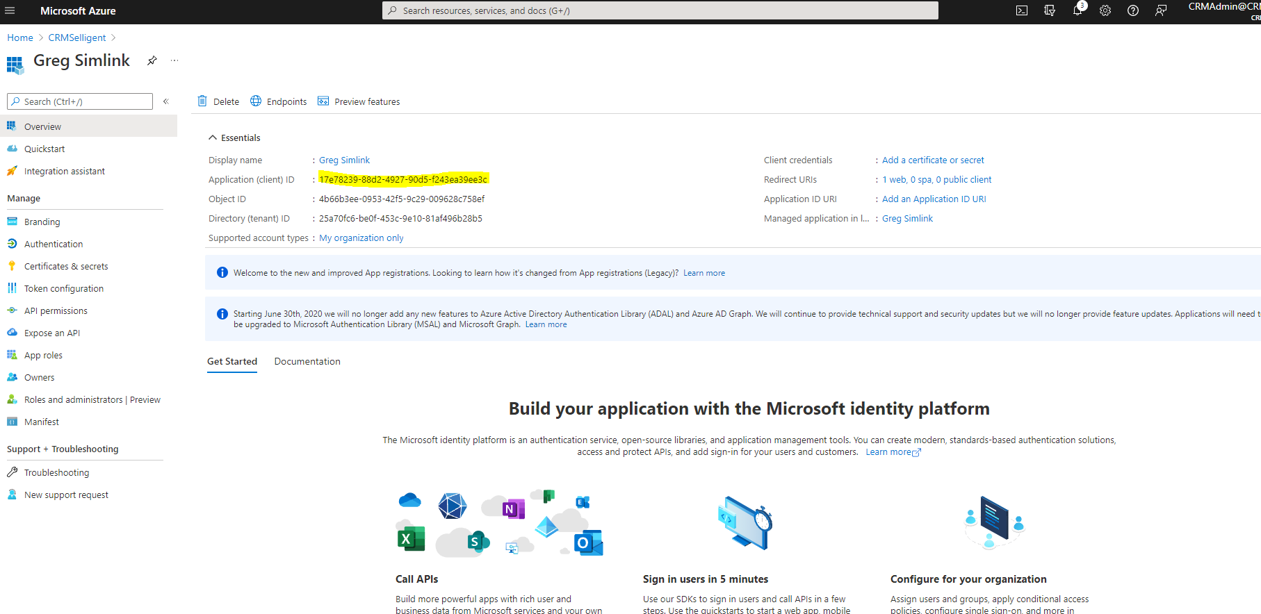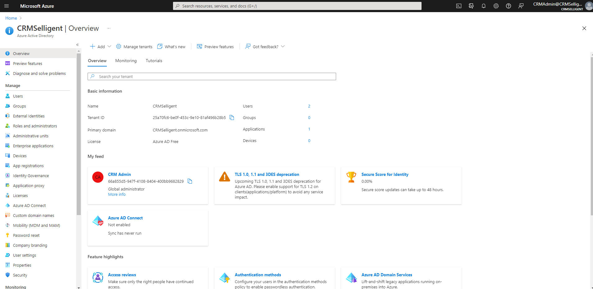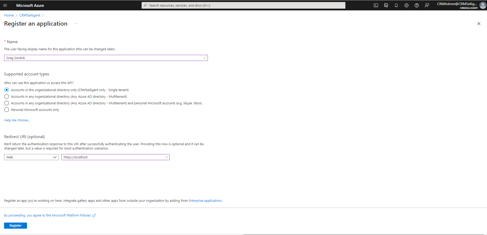 1. To create an app, connect yourself to azure active directory in the target Business unit of MSDynamics365.