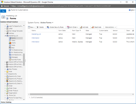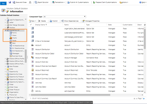 2. In the navigator on the left, expand the folder Components and go to Entities/Marketing list.