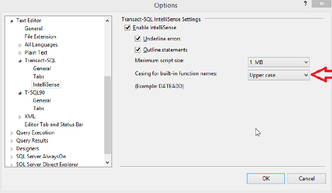 Always capitalize T-SQL keywords (SELECT, FROM, …) and built-in functions (COUNT, MAX, MIN, …). SSMS users can adjust IntelliSense settings for built-in functions